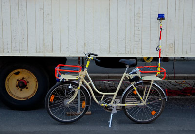 Super-Rad da übrigens! Haben Sie das Bild in der Stadt geknipst? Dann würde das nämlich super in unsere Kategorie ...in der Stadt passen!