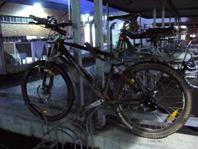 Das Rad eines unbekannten Kollegens. Meiner Meinung nach ein Ultra-Nerd-Bike mit Parallelogrammgabel, voller StVZ-konformer Licht- und Reflektorausstattung etc.
