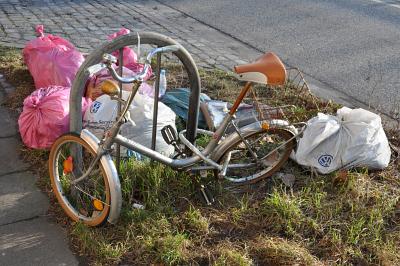 Oft schieben die alten Leute ja nur ihr Rad wenn es voll gepackt ist, aber der Besitzer dieses Rades ist kurz nach dem Foto damit weiter gefahren.