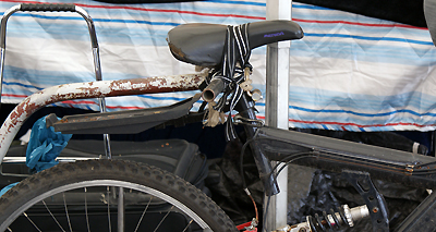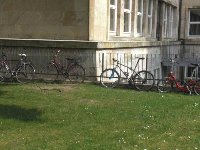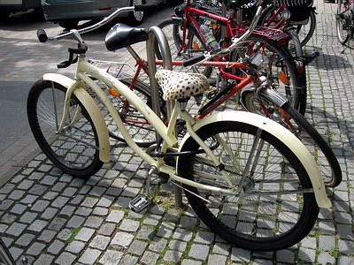 Die Tricks der Frauen: Netzstrumpfhosenoptik durch Fahrradkörbe.