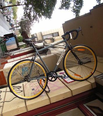 Das ist ein (Design-)Klassiker aus Dänemark (England?), etwa aus den dreißiger Jahren, es können auch die zwanziger sein. Ein Bekannter von mir hat auf einem solchen Rad vor zwanzig Jahren mit Genuß Europa durchradelt; von bequemem Fahren war die Rede. Ich vermute, daß es neu aufgelegt wurde (manufactum?) und deshalb öfter auftaucht.