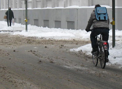 Ja, entspannt zur Arbeit rollen geht anders. Viel fieser als die offensichtlich schwierigen Straßenverhältnisse finde ich, wenn nur eine unscheinbare Eisschicht vorhanden ist und man ohne erhöhte Vorsicht fährt. Da legte ich vor ein paar Jahren mal die letzten Meter bis zur Ampel in der Horizontalen zurück...