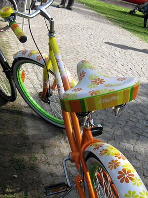 Ich kann kein Rahmenschloss erkennen, wo man einen Riemen einfädeln könnte, daher tippe ich auch auf Nagellack (evtl. auch Nachglühen der Kette, da man wegen der selbstauferlegten Beschränkung nicht im optimalen Übersetzungsverhältnis fahren kann und ggf. mit ordentlich Umdrehungen in die Pedale treten muss).