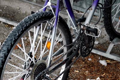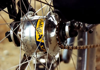 Das Radl drüben --> ist ohne Hinterradfederung, das kommt ohne Kettenspanner aus.